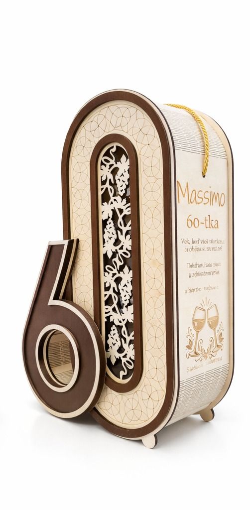 Dizajn boxu spája prirodzenú krásu dreva, jemné gravírovanie a dekoratívne výrezy, vďaka čomu pôsobí luxusne, no zároveň hrejivo a osobne. Skvele sa hodí na rodinné oslavy, jubileá aj slávnostné posedenia, kde chcete darovať niečo, čo zanechá dojem.