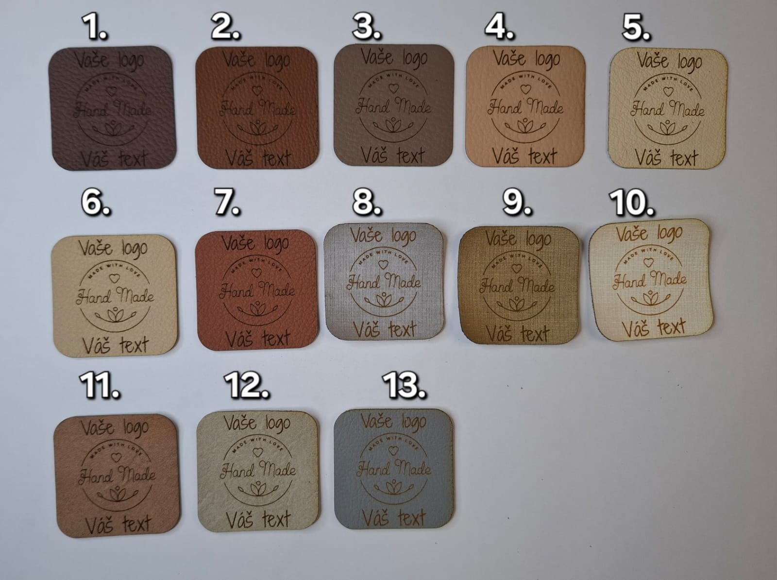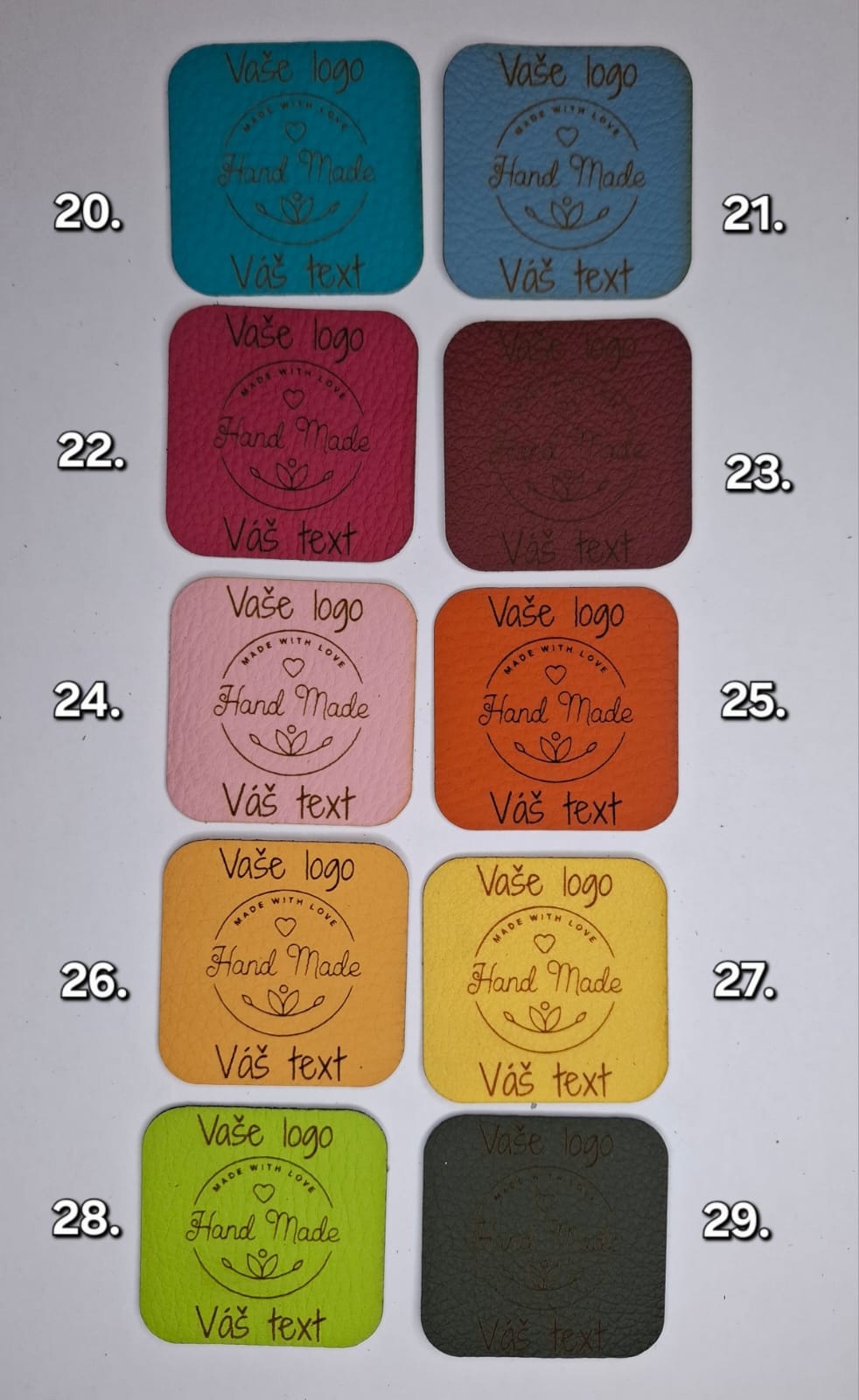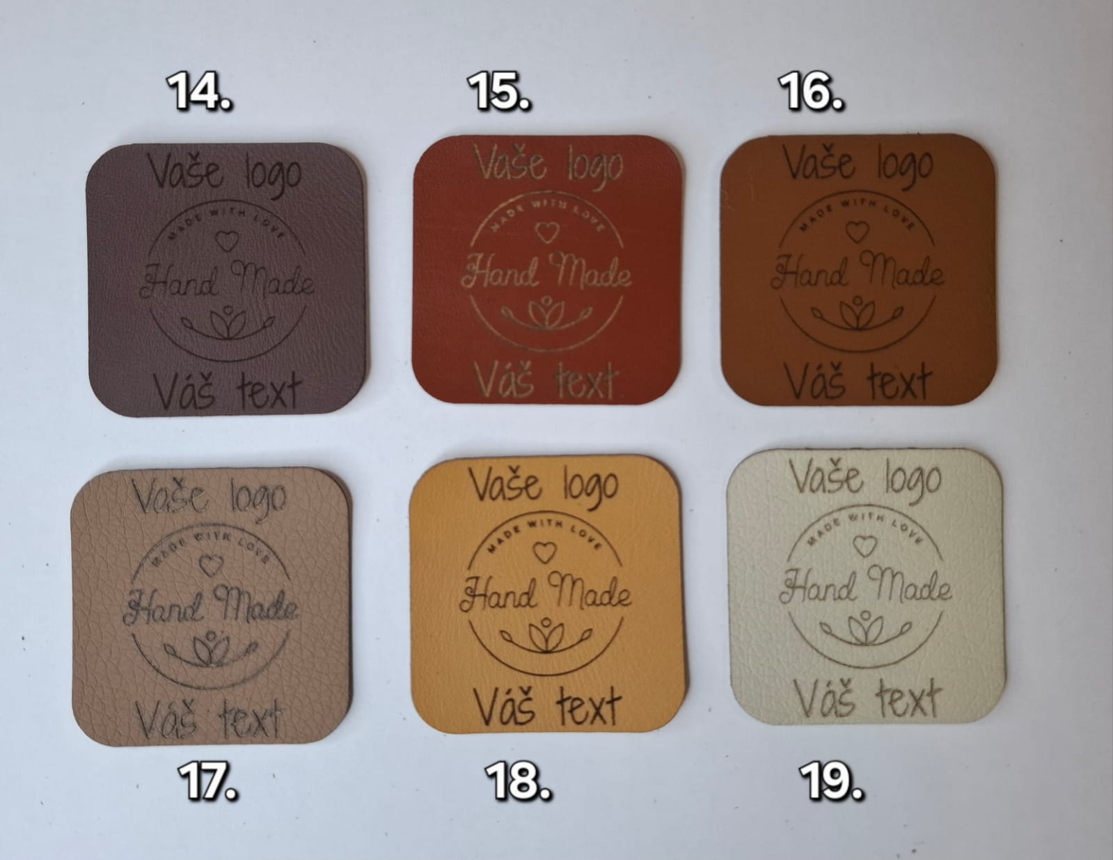 Štítky z kvalitnej a pevnej eko kože sú perfektným detailom, ktorý dodá vašim handmade výrobkom elegantný, jednotný a profesionálny vzhľad. Jemný oválny tvar a gravírovaný text „Vyrobené s láskou“ krásne podčiarknu osobitosť každého produktu.
